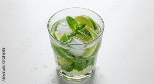 Refreshing Lime and Mint Drink in a Glass with Ice