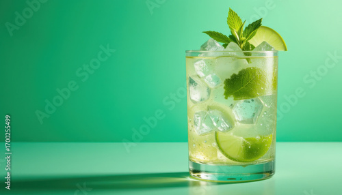 Refreshing Lime Mojito with Mint and Ice Cubes