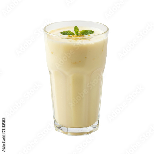 Refreshing mango lassi in a clear glass against a stark black backdrop creating a stunning visual