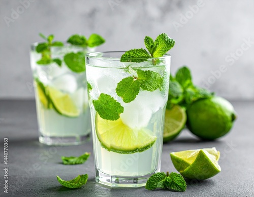 Refreshing Mojito Cocktail with Mint and Lime on Crushed Ice
