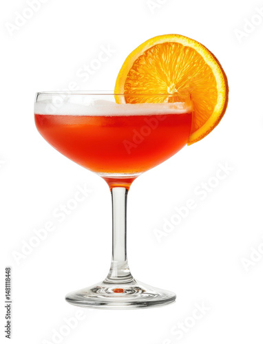 Refreshing orange cocktail in glass with citrus slice garnish, cut out - stock png.