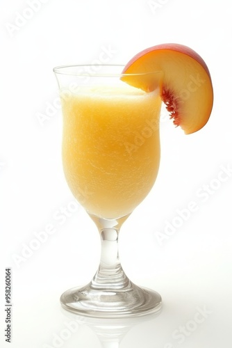 Refreshing Peach Smoothie or Juice in a Hurricane Glass, Isolated on White Background.