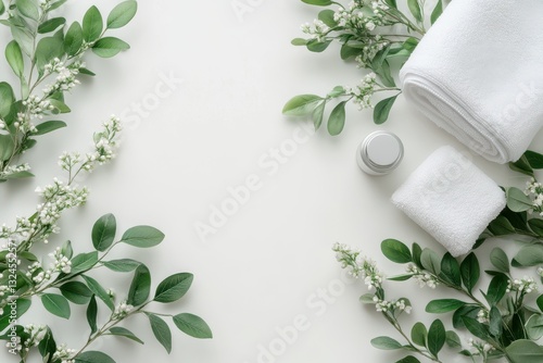 Refreshing spa day with soft towels and natural greenery for relaxation and self-care in a serene environment