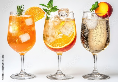 Refreshing Summer Cocktails with Fresh Fruits and Ice in Elegant Glassware for a Perfect Outdoor Gathering and Celebration