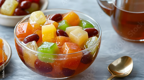 Refreshing Twist on Classic Anmitsu with Mitarashi Sauce and Colorful Fruit Cubes