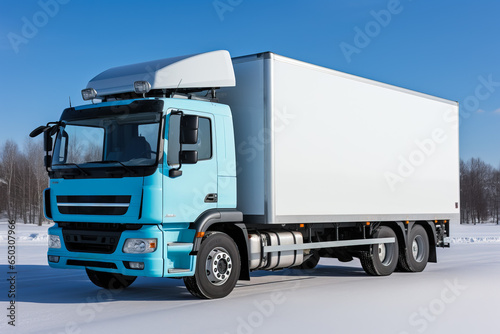 Refrigerated truck carrying perishable goods isolated on a gradient background