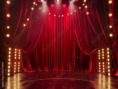 Regal stage show velvet red drapes opulent backdrop royal party photobooth empty theatre fabric draping background theatrical royal theatrical grand lux victorian Old Hollywood blank opera play set