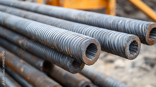 Reinforcing Steel Bars Stacked at Construction Site