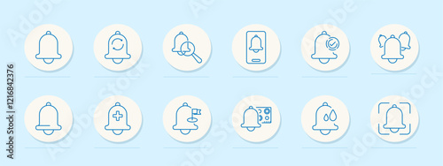 Reminder set icon. Alert, repeat, schedule, mobile notification, sound, bell group, health, flag, automation, leakage, focus