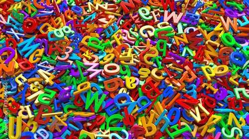 Rendering of a bunch of 3d multicolor alphabet letters in a close up view