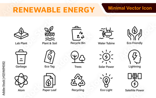 Renewable Energy Icon Set. A dynamic collection of icons showcasing sustainable energy solutions, perfect for environmental projects, educational materials, and green technology applications.