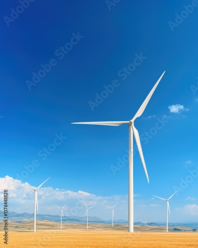 Renewable Energy Wind Turbines Generating Clean Power Under Bright Blue Skies