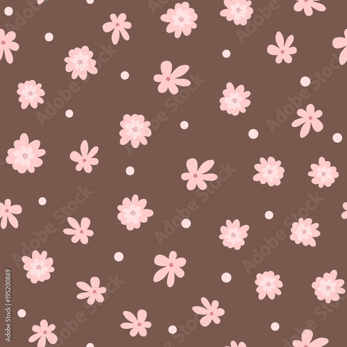 Repeated flowers and polka dots. Cute floral seamless pattern for children.