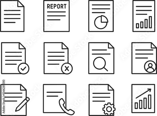 Report Line Icon Set for Business Analytics and Data Presentation in Professional Settings