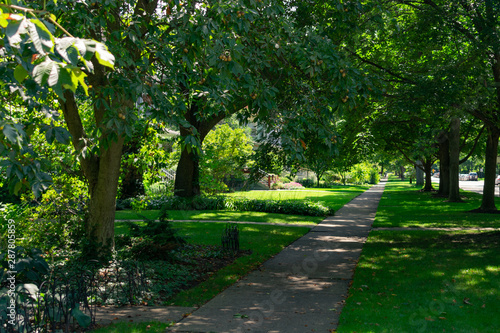 Residential Shaded Sidewalk with Green Trees in Evanston Illinois