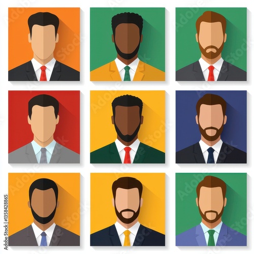 resource leadership human strategic hr concept. Grid of stylized male portraits in vibrant colors.