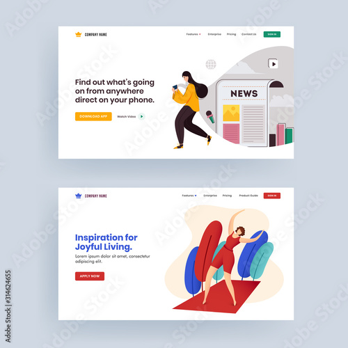 Responsive web banner or landing page set, Female lifestyle like as using smartphone with social media app and doing exercise.