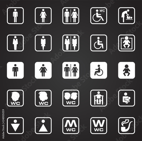 Restroom icons set on black background for graphic and web design, Modern simple vector sign. Internet concept. Trendy symbol for website design web button or mobile app