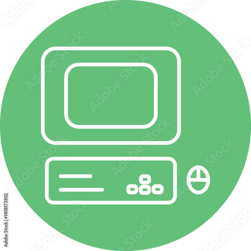 Retro computer icon with green background for technology and device design