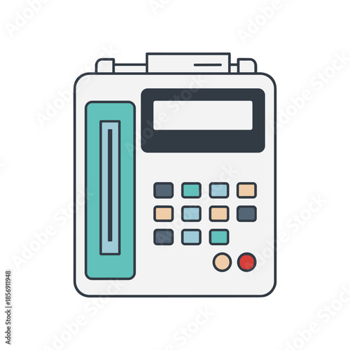 Retro Fax Machine with Paper Slot and Keypad.