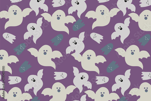 Retro Monochrome style seamless pattern featuring Halloween elements, perfect for fabric, gift wrap, packaging, wallpapers, invitations, digital background