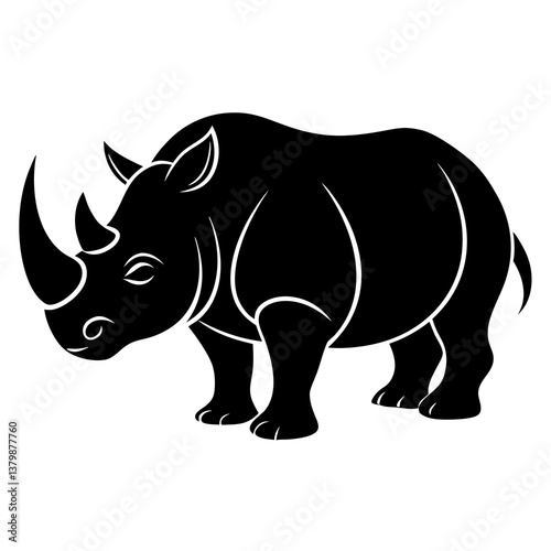Rhino standing alone on a white background
