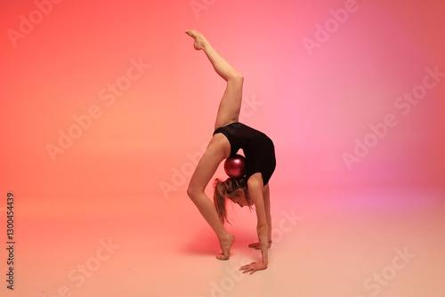 Rhythmic gymnastics girl. Colourful background.