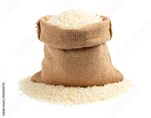 Rice in sack on transparent background