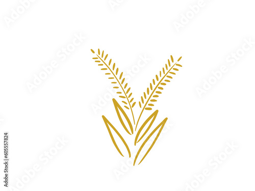 Rice is an important food. very useful can be processed into flour and many products on a white background.