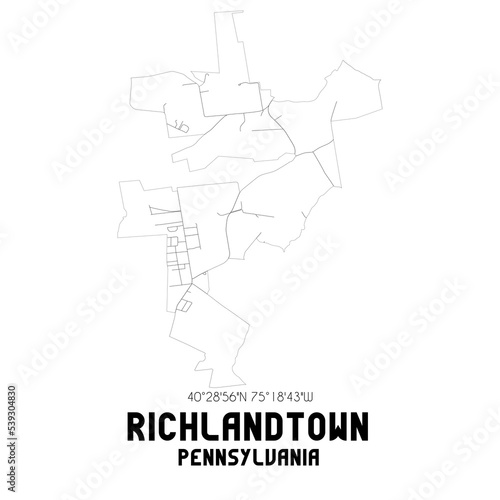 Richlandtown Pennsylvania. US street map with black and white lines.