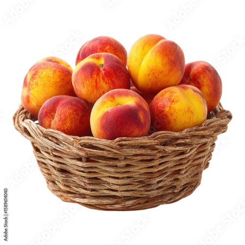 Ripe Fresh Peaches in Wicker Basket in Transparent Background