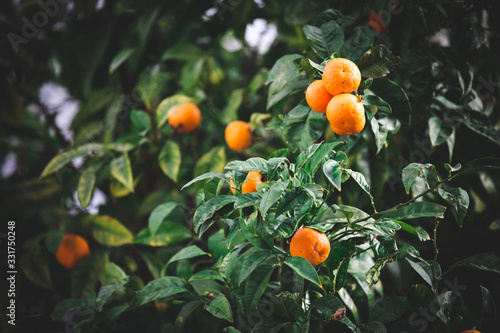 Ripe Orange Fruits attached to a Tree with the Branches and Leaves Green in Vejer de la Frontera, Cadiz, Spain