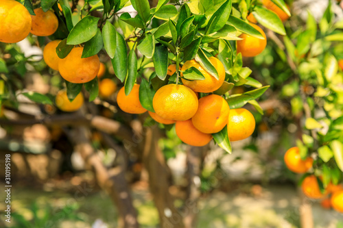 Ripe orange in the orange garden