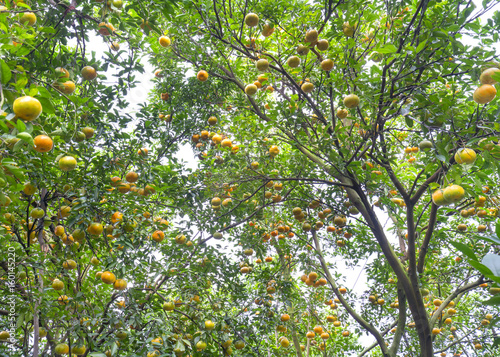 Ripe orchard on the tree with thousands of fresh ripe yellow fruits are in the harvest. This is a specialty fruit in the West of Vietnam