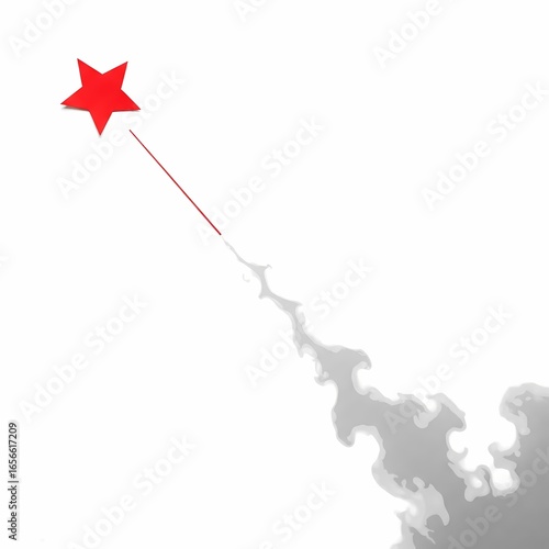 Rising Red Star Symbol with Smoke Trail on a White Background