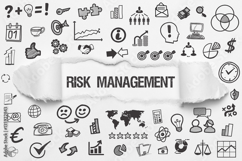 Risk Management / weißes Papier mit Symbole