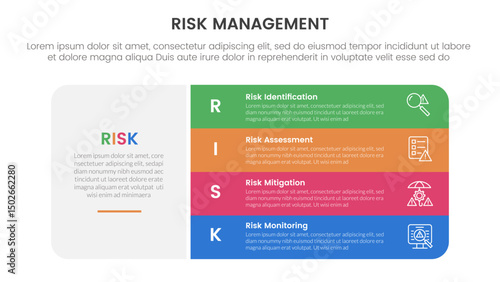 risk management infographic with 4 point stage template with big round box and vertical stack point for slide presentation