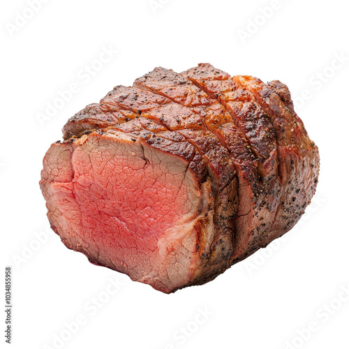 Roast beef isolated on a white background, showcasing its juicy texture and rich color. cutout png