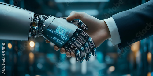 Robot and Human Handshake Symbolizing Digital Collaboration