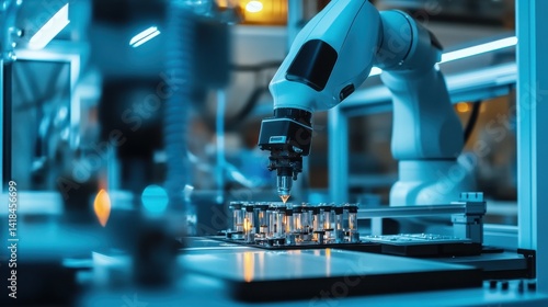 Robotic arm performing tasks in a modern laboratory setting during the daytime