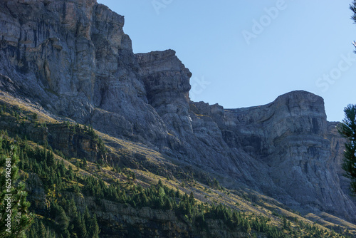 Rock formation in the walls of Ordesa canyon in the Pyrenees mountains, Ordesa y Monte Perdido national park, Aragon, Huesca, Spain