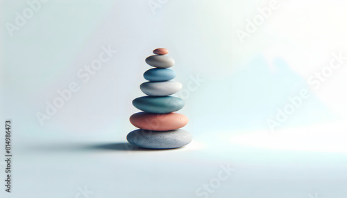 Rocks are of different sizes and colors, and they are arranged in a pyramid shape symbolize balance and stability.