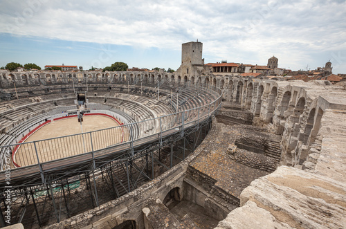 Roman amphitheatre UNESCO world heritage site in Arles, south of France.