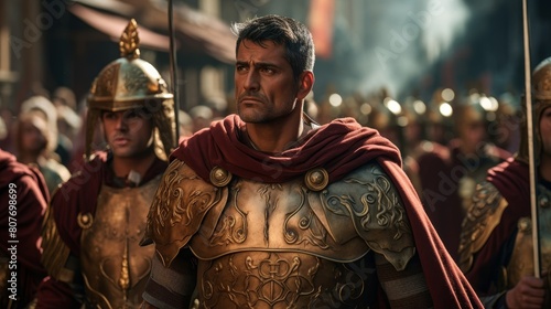 Roman general triumphantly parades through Rome cheered by the populace