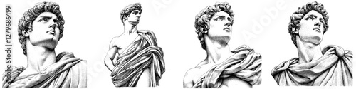 Roman statue sketch in dotwork, vector bitmap illustration of a Bust of a Male Figure