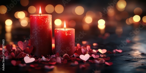 Romantic candles surrounded by heart-shaped decorations create a warm atmosphere for a special occasion