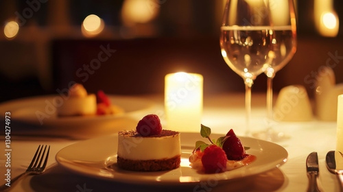 Romantic Dinner Dessert, Candlelight, Cheesecake - Warm lighting