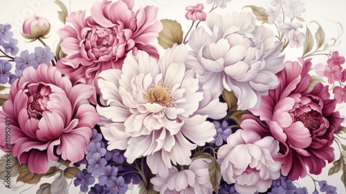 Romantic Floral Bouquet of Peonies and Forget-Me-Nots