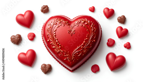 Romantic Heart-Shaped Gift Box with Chocolate and Red Hearts