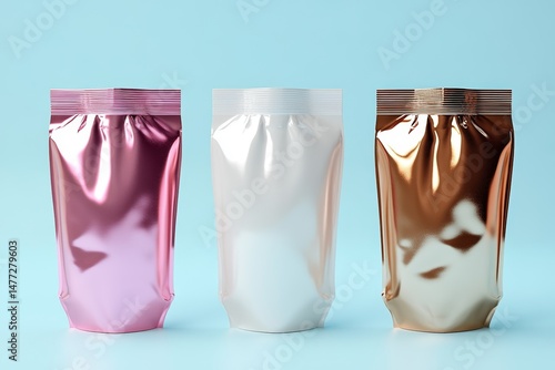 Rose Gold Silver Gold Metallic Stand Up Pouches Mockup